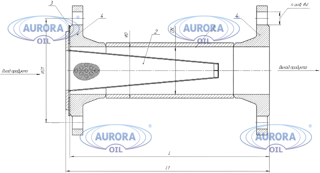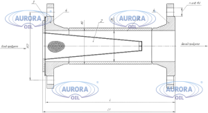 1-корпус, 2-фильтрующая корзина, 3-прокладка, 4-присоединительные фланцы